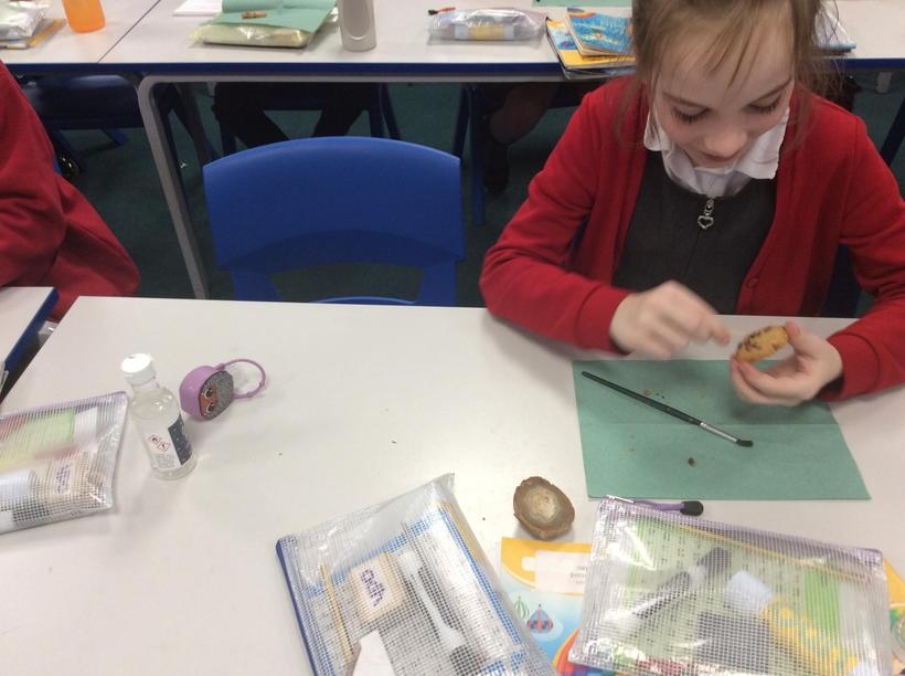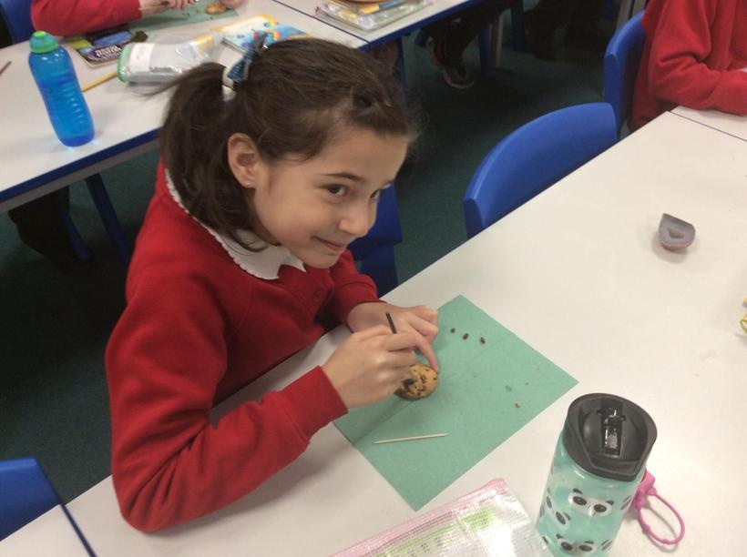 Following extensive research and report writing about Mary Anning, we acted like palaeontologists and tries to mimic her skills, by carefully removing chocolate chips from cookies.