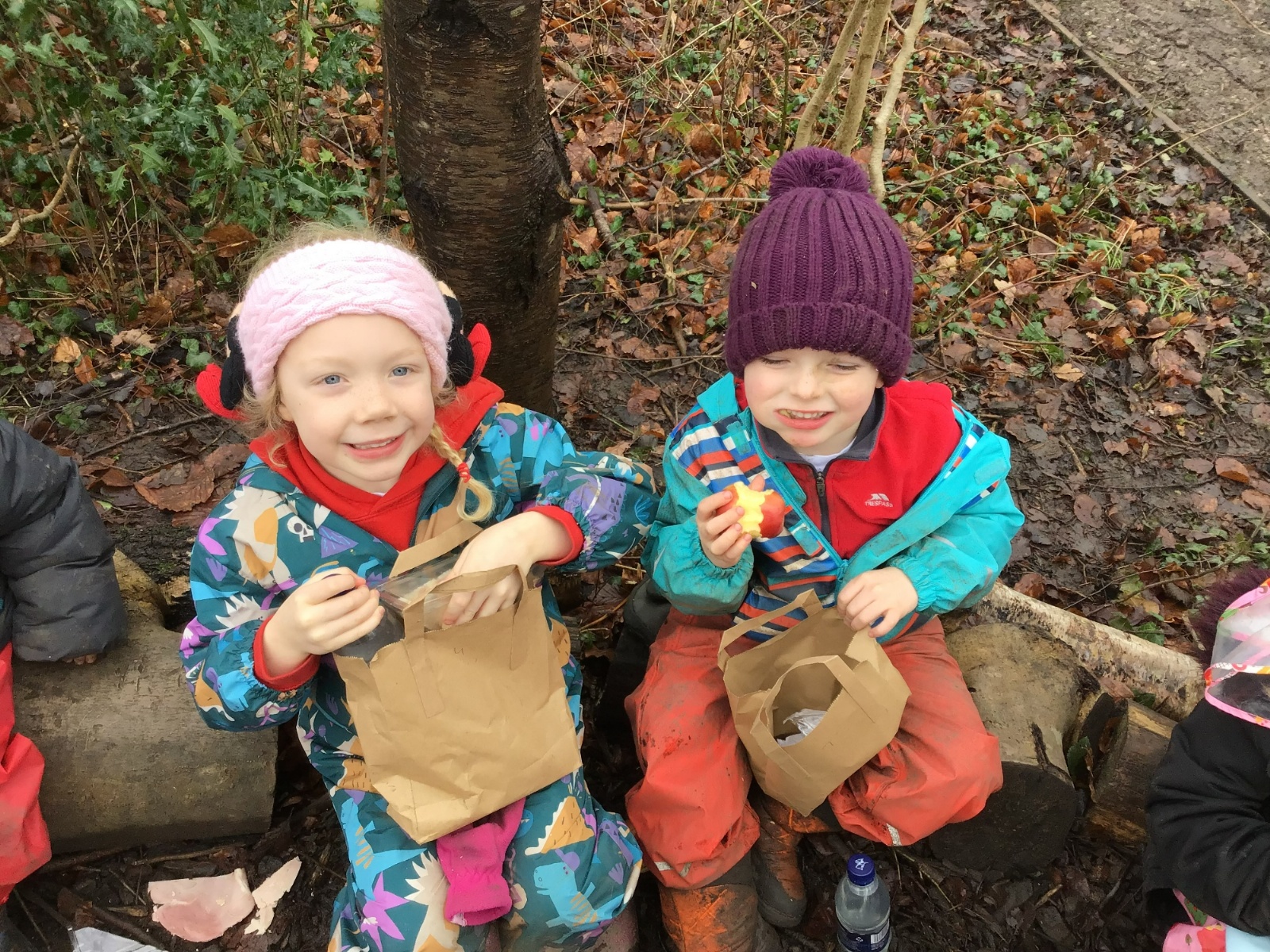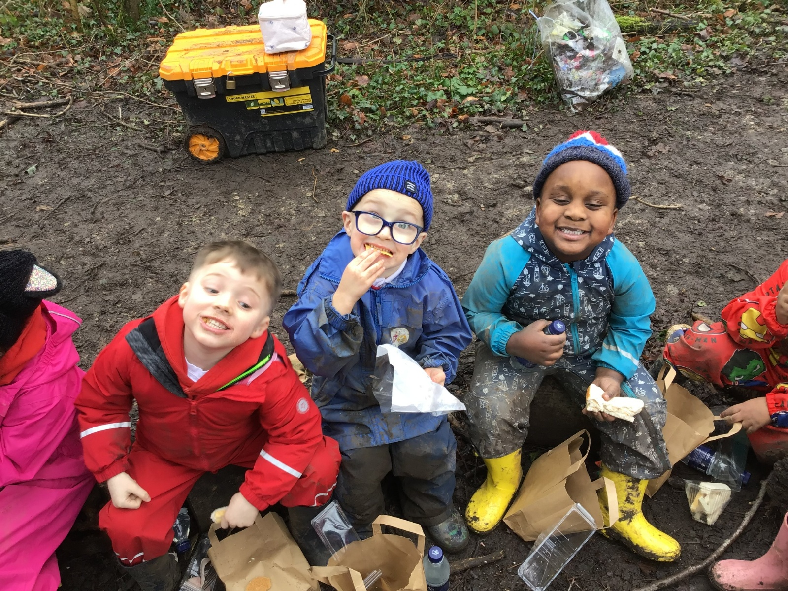 We spotted lots of signs of winter during our winter picnic. It was cold (although, bizarrely not as cold as our autumn one!) We noticed that the woodlands looks quite bare at this time of year due to the leaves falling from the trees. Although we did spot that beech trees tend to keep their leaves after they have turned brown rather than dropping them like other trees do in winter.