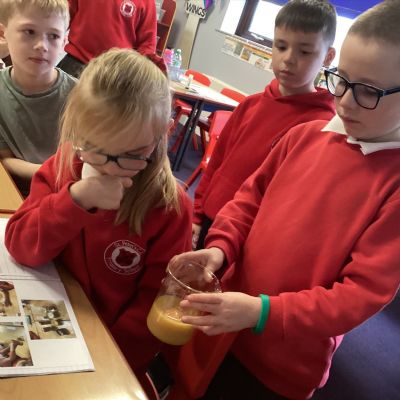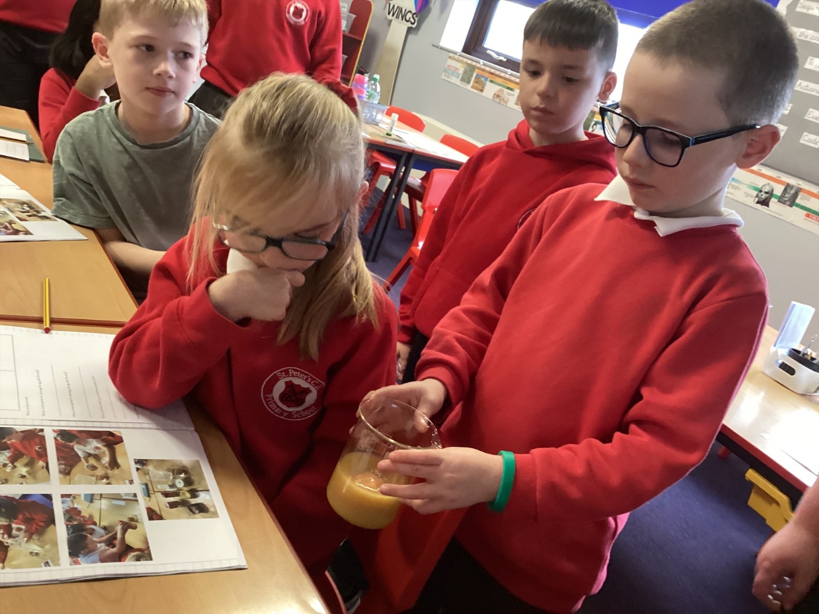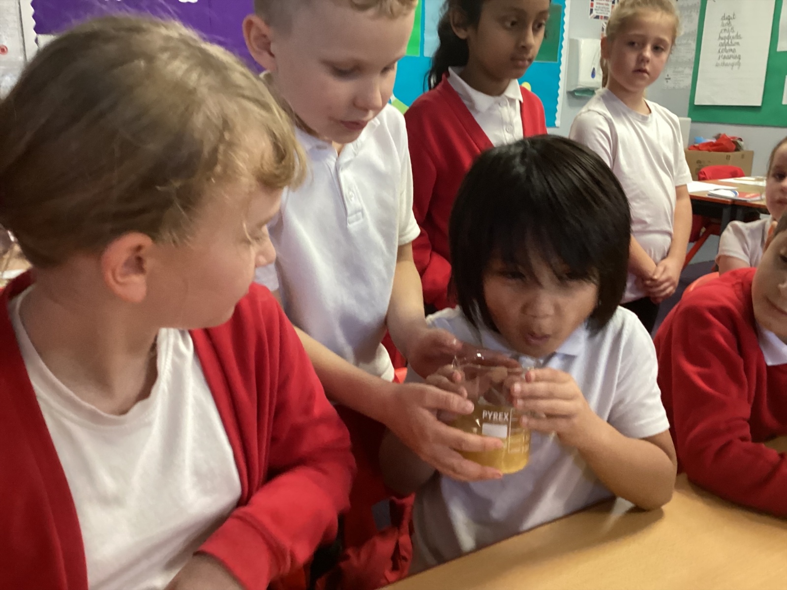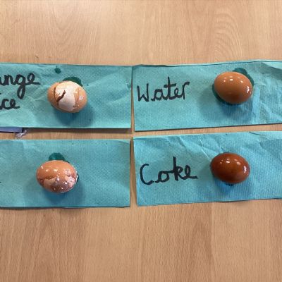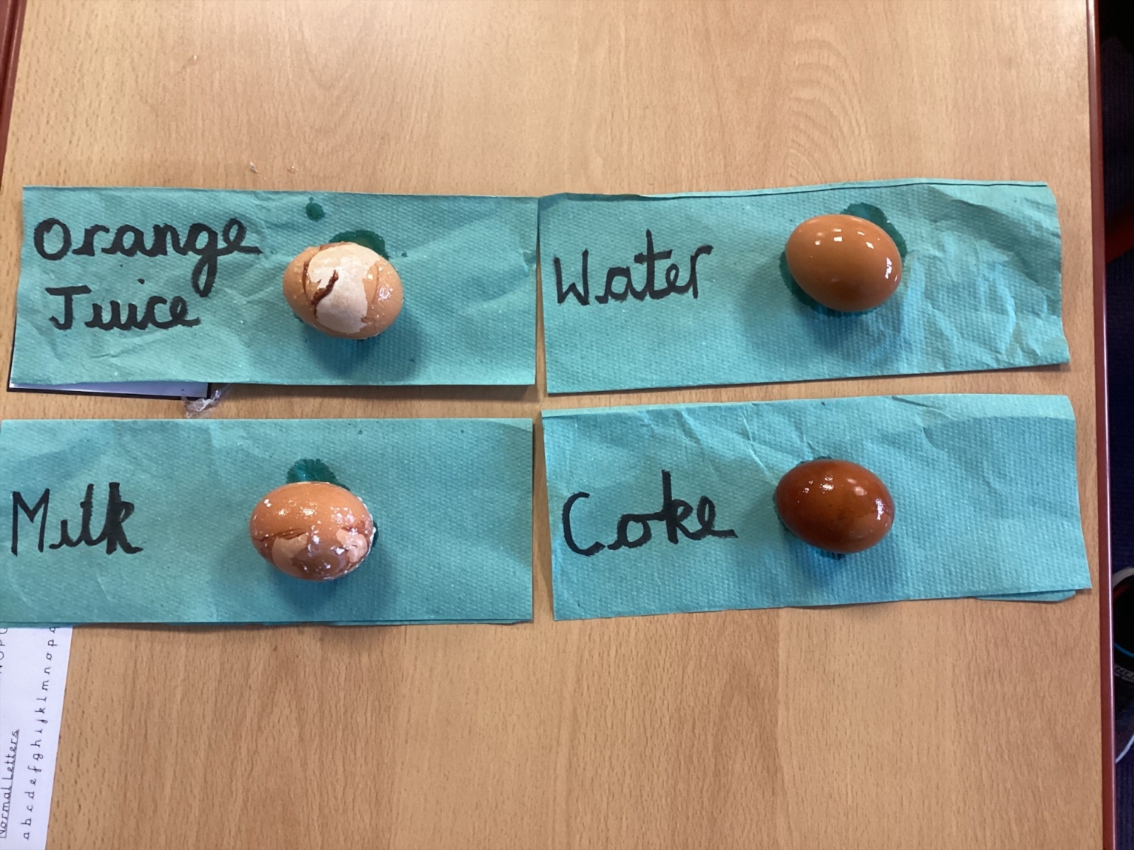 We observed the effects each of the liquids had on the egg shells. We observed the water caused the least damage and orange juice caused the most damage. The children would recommend drinking water and milk because the caused the least damage.