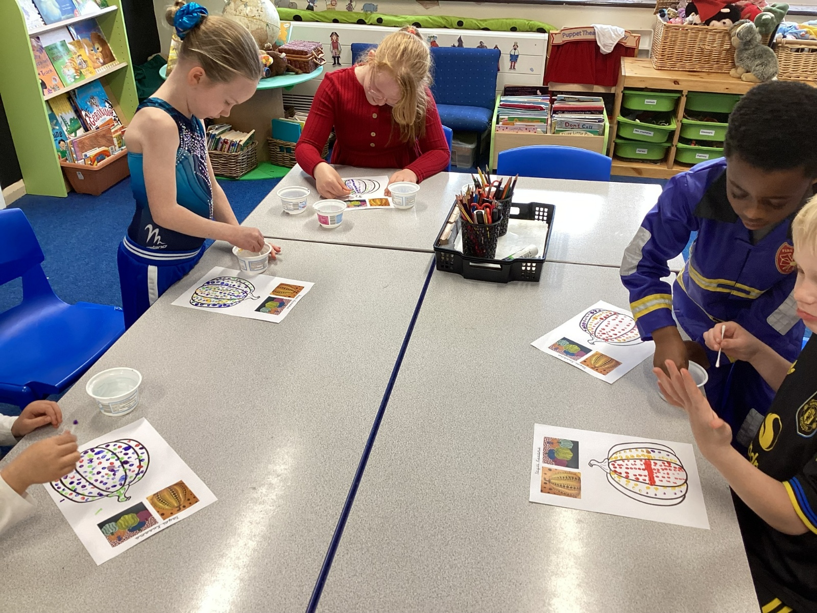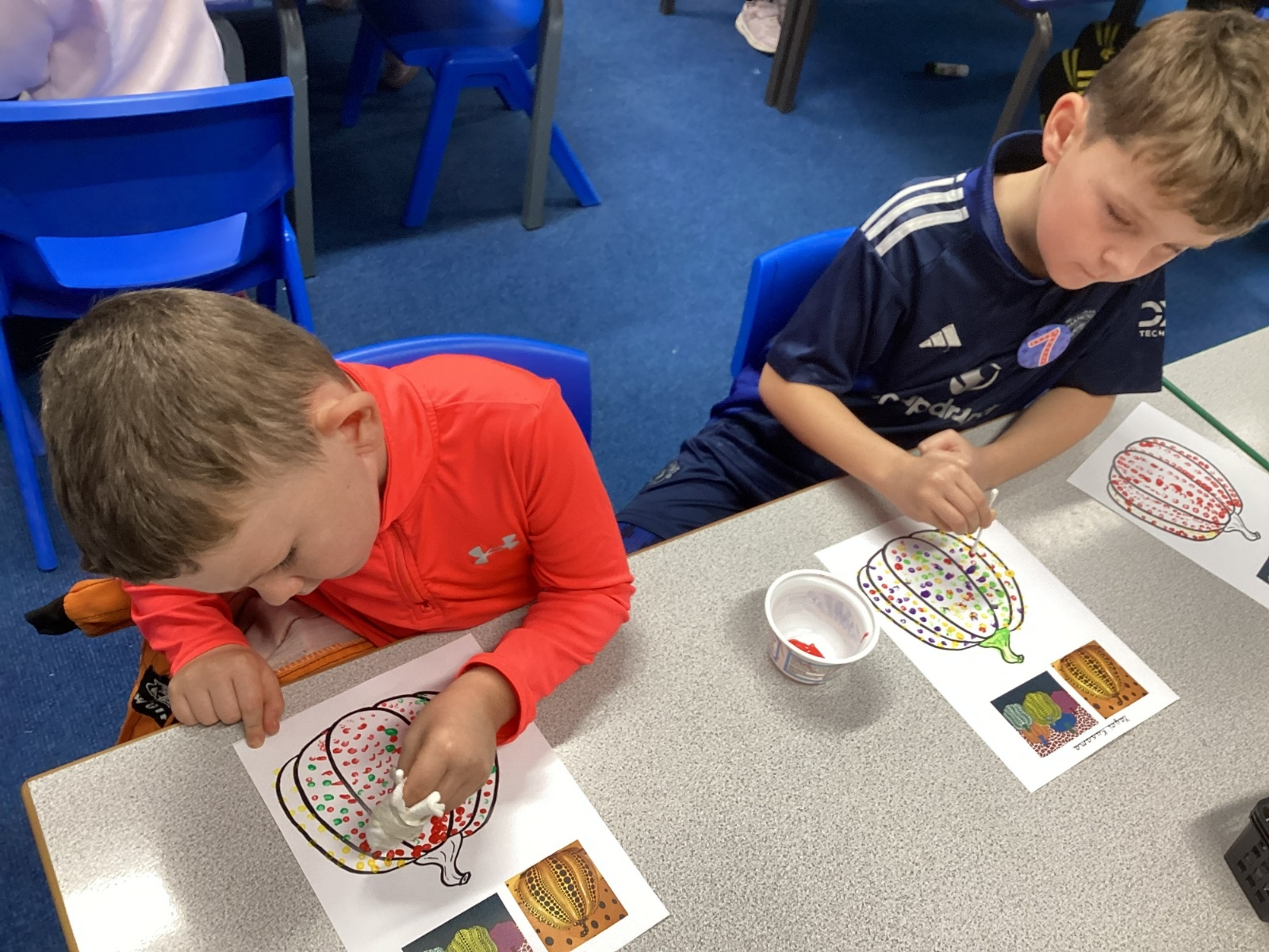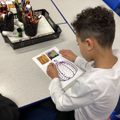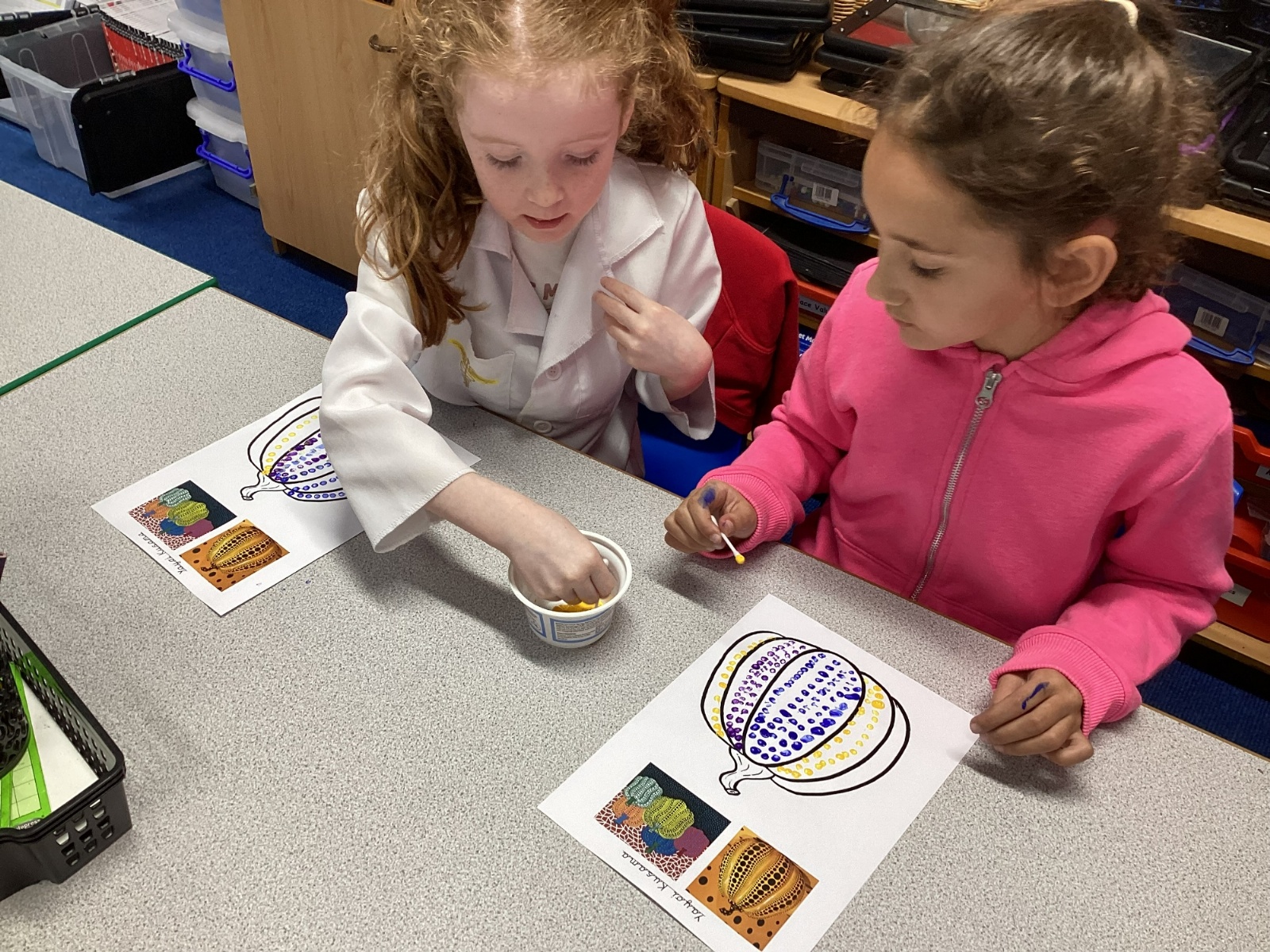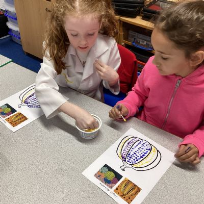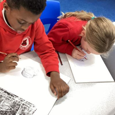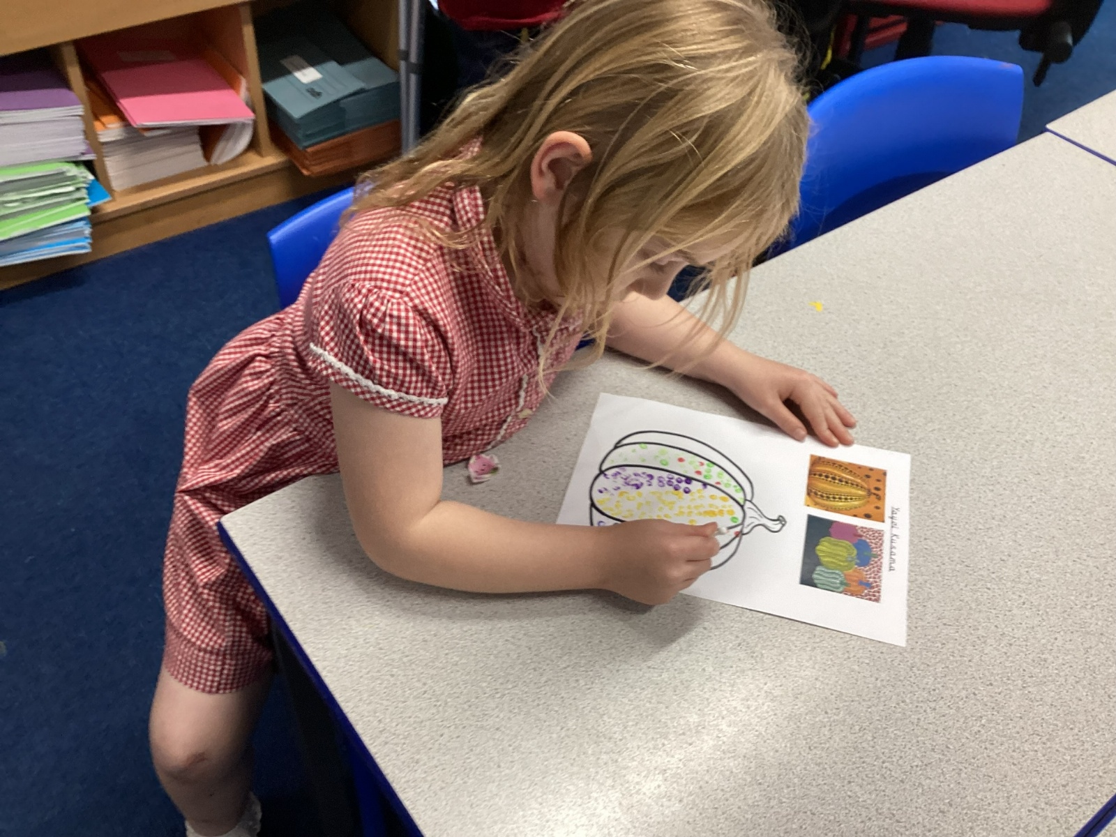 Drawing pumkins and looking at the artist Yayoi Kusama