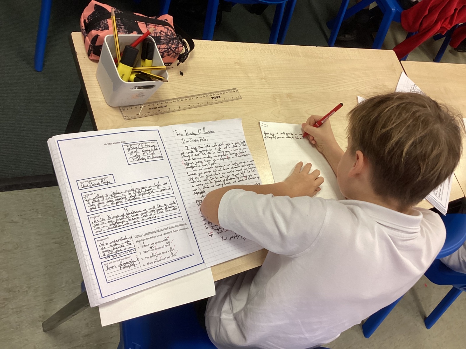 Year 6 wrote letters inviting Bishop Philip to our school. We wanted him to come in and share his experiences of his own religious pilgrimage. Our RE quest this term has been to understand journeys and pilgrimage. We also loved his worship during his last visit, and we hope he will lead us again in worship. We hope he writes back soon.