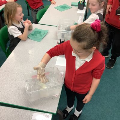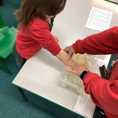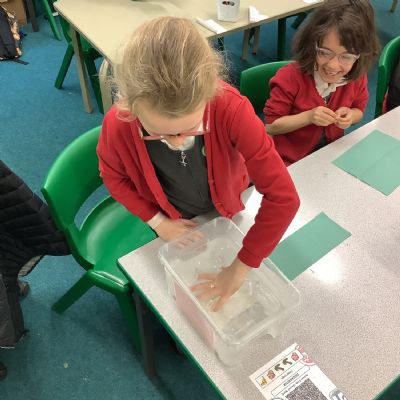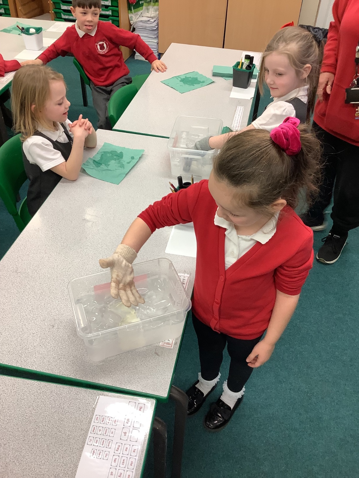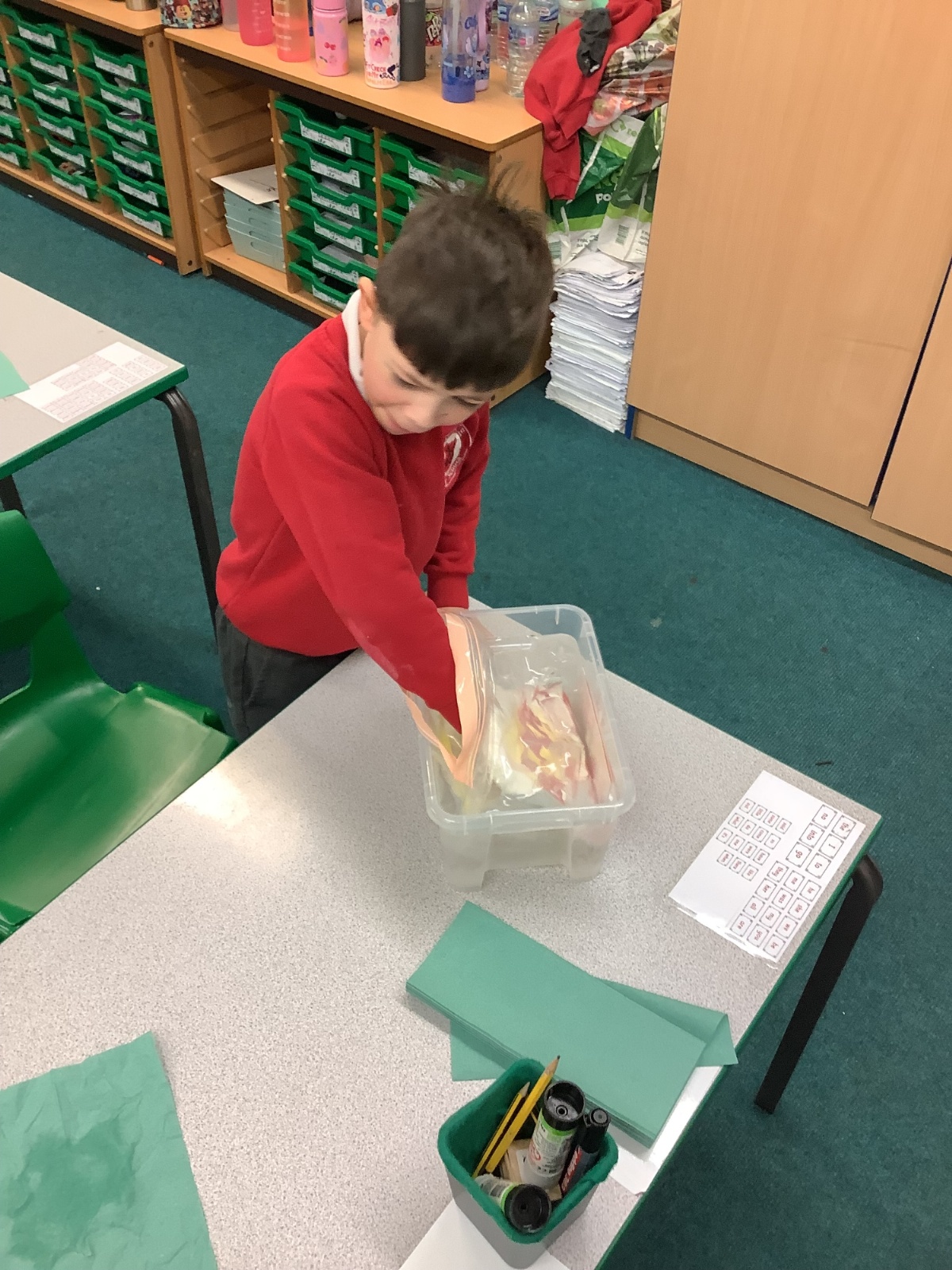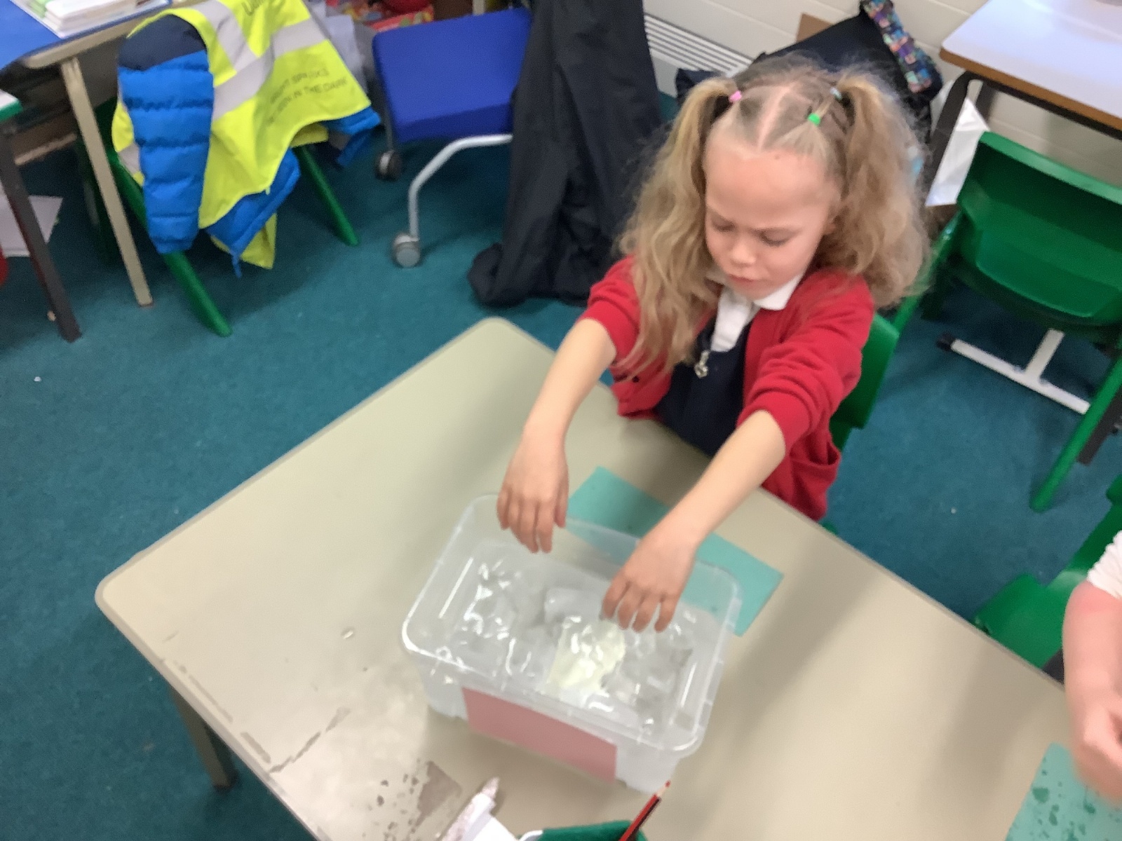 We have been looking at how animals in the Arctic stay warm. We spoke about blubber and what it is. We carried out an experiment where we tested different materials to see which kept our hand the warmest.