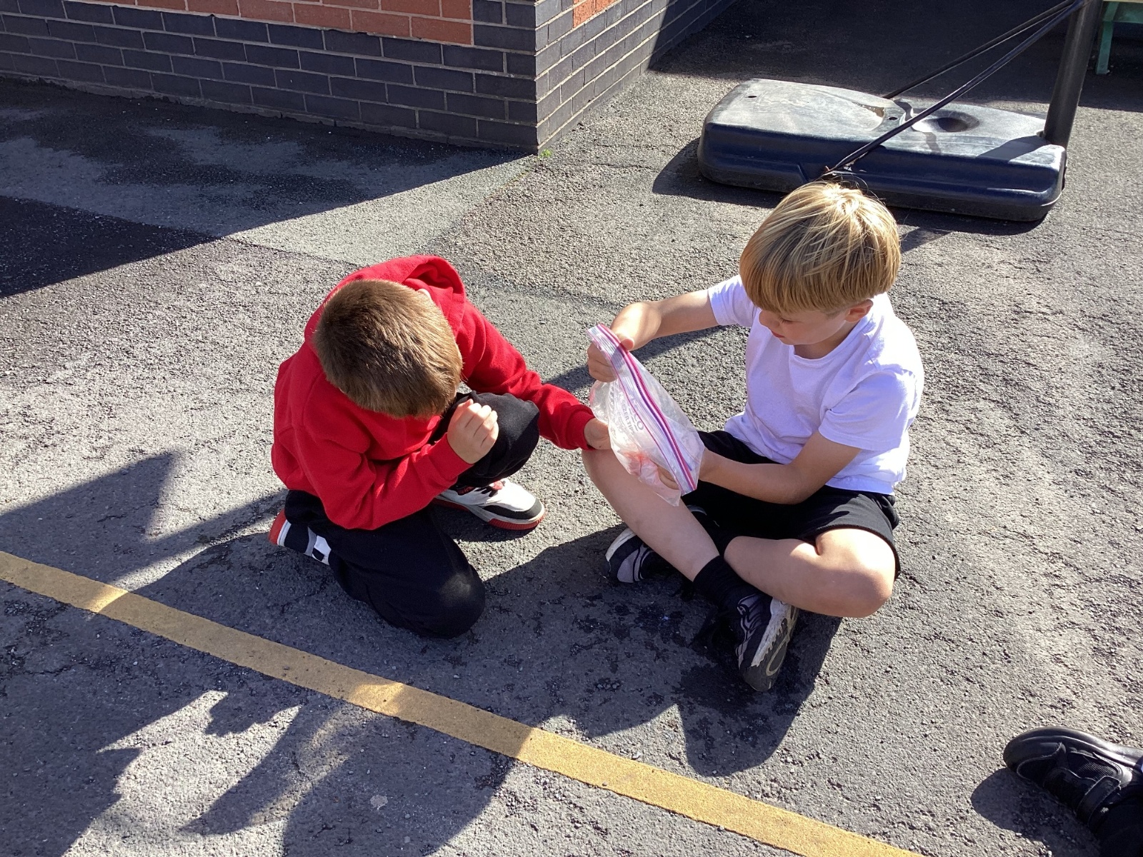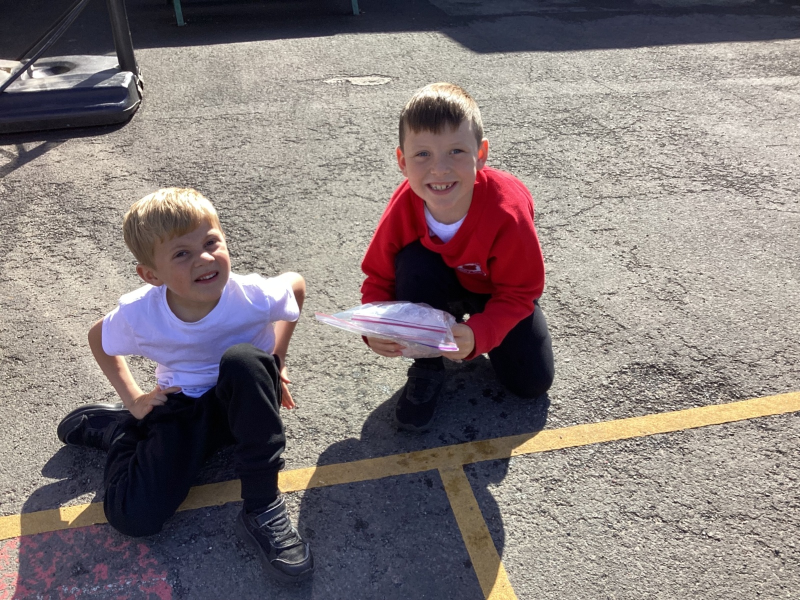 Cedar and Hawthorn had great fun trying to make strawberry ice-cream!