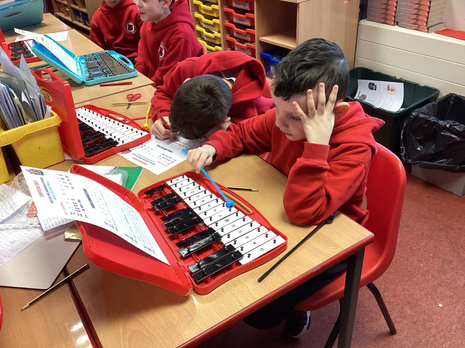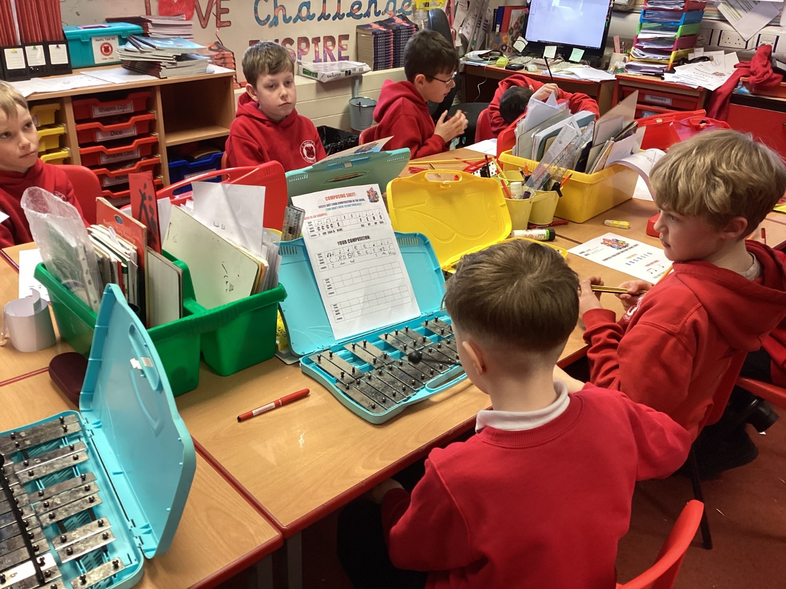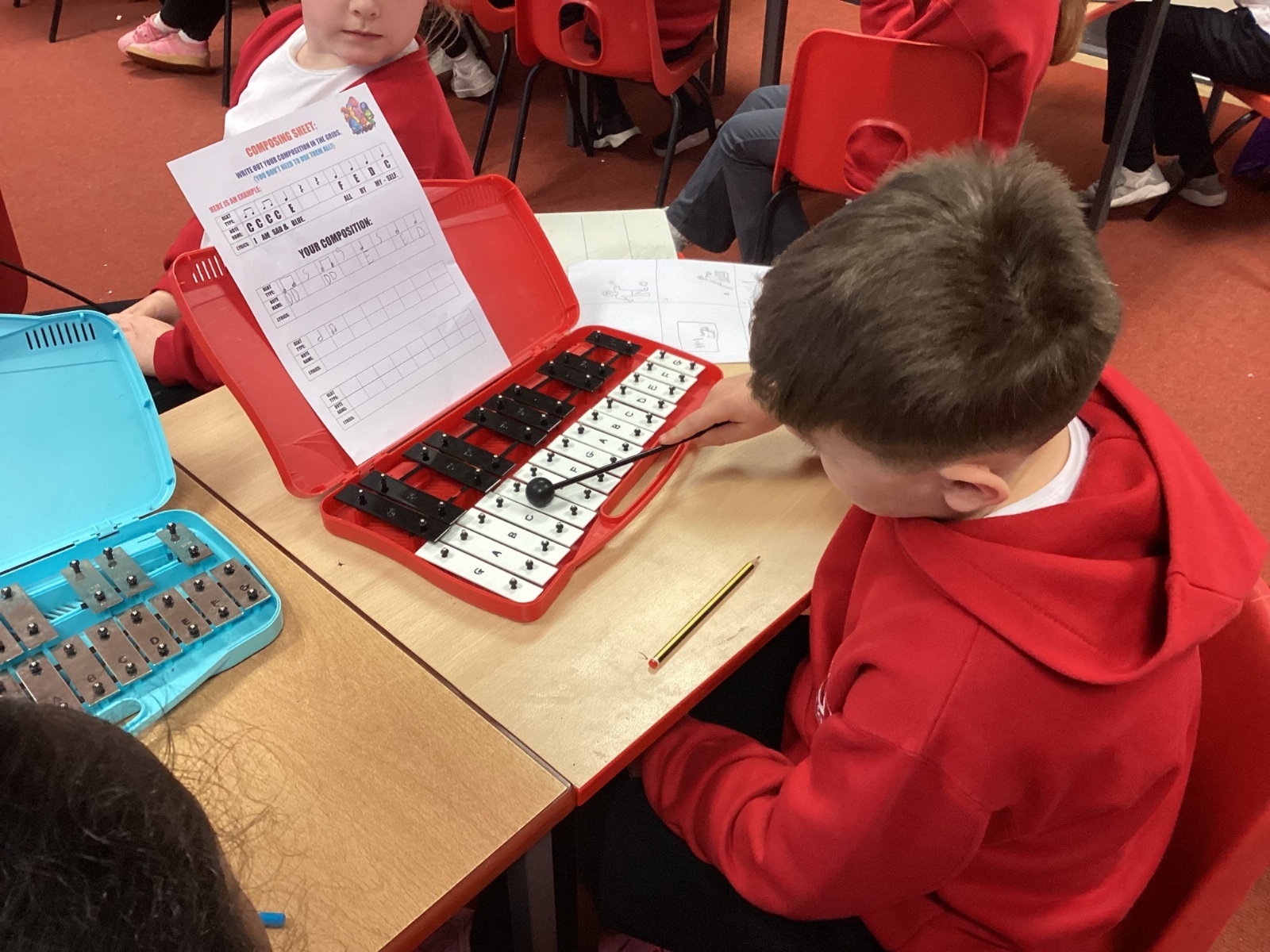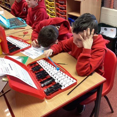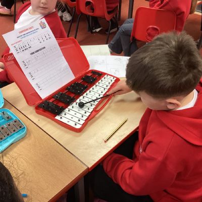 We composed our own music and played it for the class on the glockenspiel. Some children even added their own lyrics.