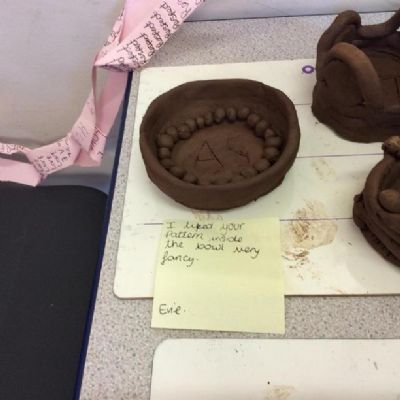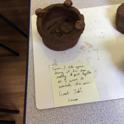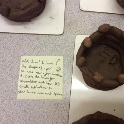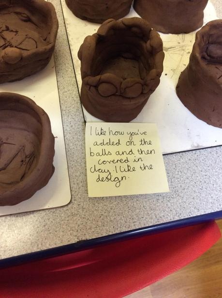 We looked closely at each other's artwork and gave some feedback for what we liked about each other's clay coil pots and what we thought went well.