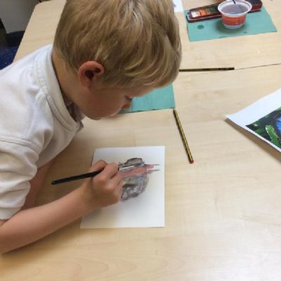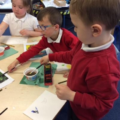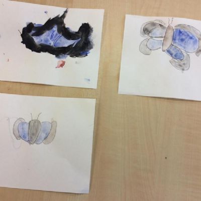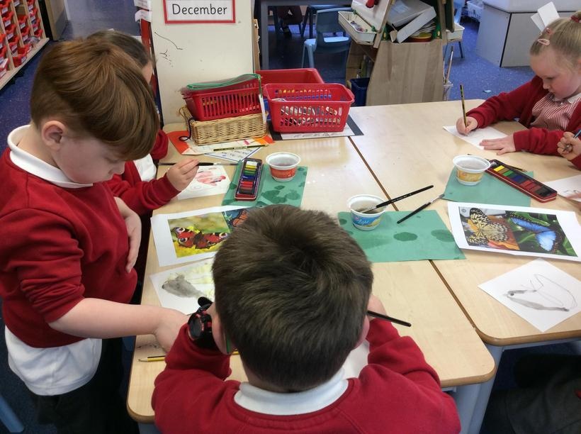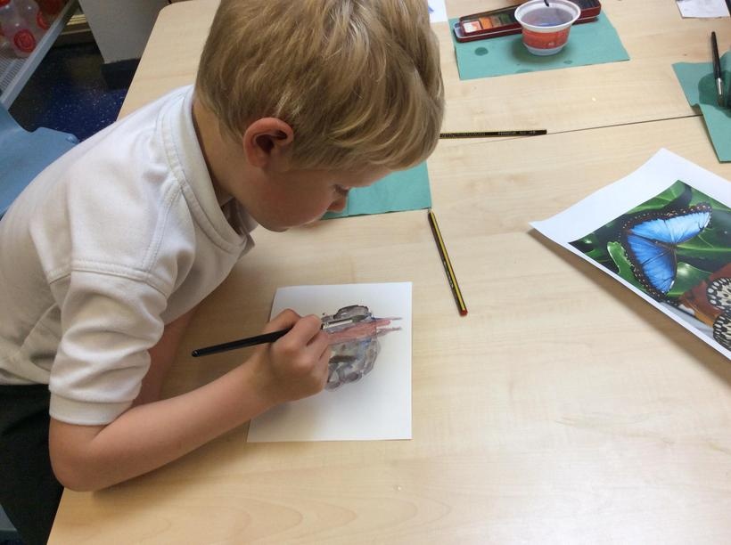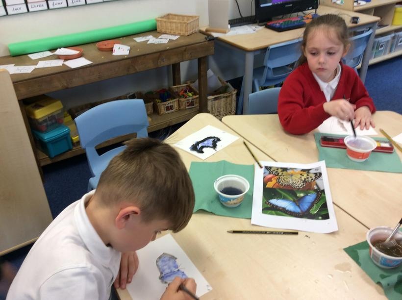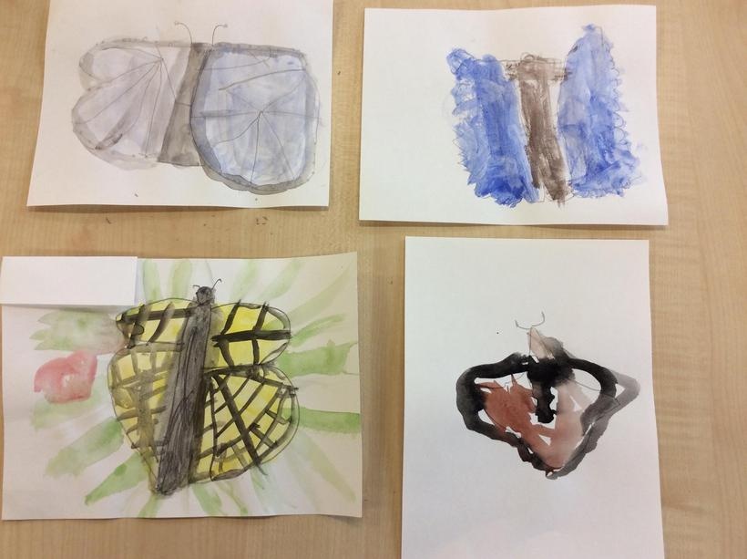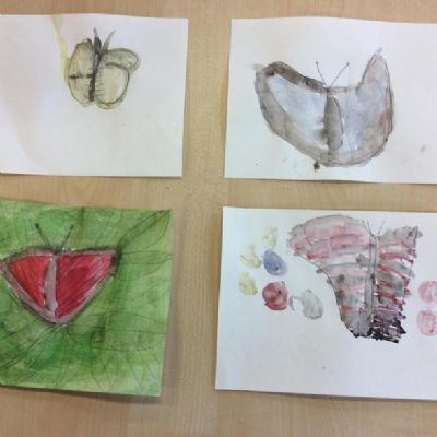 We looked carefully at a variety of butterflies and used watercolours to paint them.
