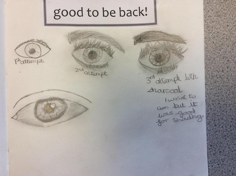 We used different grades of pencils and charcoal to see which we preferred. Our first attempts were from memory, then we looked at photographs and then we also learned some techniques from artists modelling how they drew them. Look at the progress we made from our first attempts......