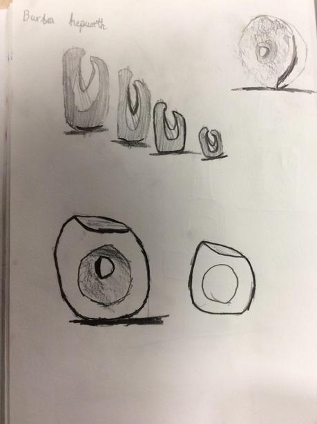 Hawthorn Class - Lesson 2 - comparing Henry Moore with Barbara Hepworth in our sketchbooks