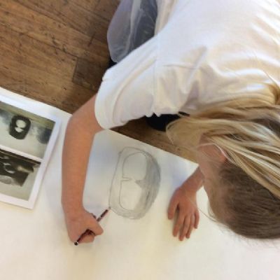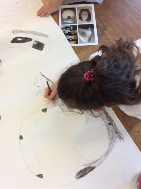 Lesson 3 - The Big Draw of Henry Moore and Barbara Hepworth - drawing in a large group of large sculptures!