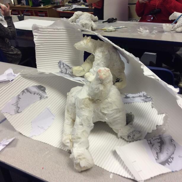 Using plastic packaging as our modelling media, we are sculpting polar bears from a material which ironically is adding to global warming and affecting the polar bear habitat.